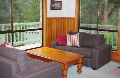 Waratah Cottage is a spacious 4 bedroom house amongst the trees in the heart of the Grampians. Only 2.5 kms from the centre of Halls Gap. The rear entertaining deck, with BBQ and retractable shade awning, faces north with views of Grampians landmarks Boronia Peak and The Pinnacle. The house is in an unfenced bushland setting with regular wildlife visitors.