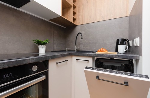 this beautiful and modern apartment is situated in warsaw at the warneńska street The Mokotów district is known for its many parks and green areas. At the same time, there are numerous retail and catering points in the neighborhood – best of both worlds! The closest supermarket (Żabka) is only 300 m away. The location also offers many atmospheric restaurants and cozy cafes, such as Lokal Café (450 m), Cafe Bonifacy Food & Wine (700 m), and Pizzeria Il Bassotto Verde (550 m). Additionally, for people wanting to get a taste of Warsaw nightlife, there’s a Pub Cafe Atlantis very close to the accommodation – only 700 m away! As for the nature lovers, one of the biggest parks in Warsaw, Park Arkadia, is located just 2 km away. It’s a perfect place for a morning jog or an evening walk. It also offers multiple attractions, such as beautiful statues and an art museum. In addition, one of the most popular destinations in Warsaw – Royal Baths Park – can be reached in around 10 minutes by car. Another great place to visit during your stay is definitely Aqua Park Warszawianka (4.3 km), especially if you’re travelling with kids! A day full of fun is guaranteed. There are also many bus and tram stops in the area, which make it quick and easy to reach the city center.