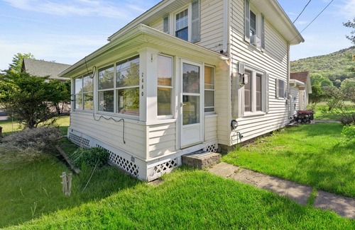 Water view home with a wood stove, grill, & partial air-conditioning - dogs ok | House in Queensbury