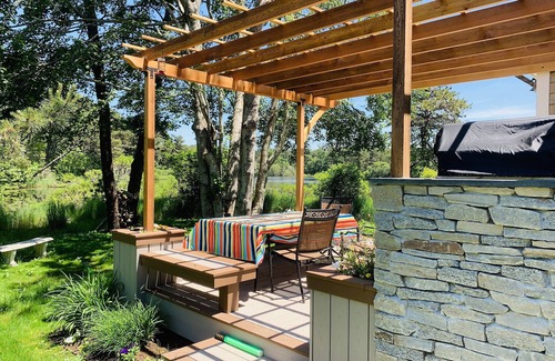 amenities: kayaks, paddle board, bikes, tennis rackets, fishing rods, beach toys, beach umbrella and cart mini split ac units in the master bedroom and dining room along with a window unit in the second bedroom ensure the home is kept comfortable on the days the cool breeze from the pond is not sufficient!