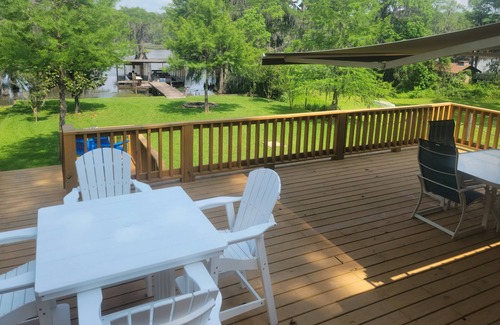 This is the best place to escape into another world and still be in Texas! Our newly remodeled lakefront home has the most breathtaking views. Truly a photographer and birdwatcher's dream come true! After spending the day exploring what Caddo has to offer, have a relaxing evening around the fire pit by the water, or stargaze on the vast two-platform deck we just built!The biggest attractions on this lake are boating, fishing, and wildlife viewing, so don't forget your binoculars. Just down the street, you will find guide companies and a variety of tours with themes varying from science and birding to the gators! The famous Shady Glade Cafe, specializing in breakfast and lunch, is an easy walk from the home. You can book a trip with several different tour and fishing guide companies at the boat ramp. If you are looking to venture out on your own, you can head right up the road to Johnson's Ranch to rent a canoe, kayak, or even a boat to explore the tranquil waters! If you need more information, please refer to our Welcome Book that has all the information you need for any adventure.Caddo State Park provides its own kayak and canoe rentals with 50 miles of paddling trails in addition to the Caddo Forest Trail, historic cabins, and guided nature programs. There are miles of nature trails throughout the park. Less than 20 miles away, the neighboring town of Jefferson boasts multiple antique stores, quaint boutiques, and great places to eat. My favorite thing to do is go to the Port Jefferson Nature Preserve they have amazing abstract forest art throughout the boardwalk trail. Other attractions are the historical homes and Excelsior House Hotel, where you can book a walking tour, a carriage ride, and a ride on the antique train on the Jefferson Railway Express Train. You will also get to find all of your Bigfoot memorabilia here! Our hope is that you find this place as majestic as we do and share your experience with your family and friends! Once you come to Caddo Lake, you will be back! There is something mysterious about this place that is unlike anything in this world!.