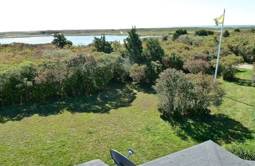 Our waterfront cottage on Chilmark Pond is a short boat ride or wade to a stunning barrier beach on the Atlantic Ocean. There is access to Abel Hill Association tennis courts, miles of private beach for walking, swimming, body surfing and birding and Chilmark Pond for boating. In the main house there are 3 bedrooms, a spacious open, bookshelf-lined family room with a large round dining table and smaller puzzle table, a very well-equipped kitchen, a full bath and a half bath. The close-by back house has twin beds and a bunk bed, a half bath and a laundry room. It is a great place for kids or guests. Abel's Hill is a short ride to Menemsha's fish stores and great sunsets. The use of beach chairs and a canoe is included. Two or more weeks rental receive a 5% reduction in rate..