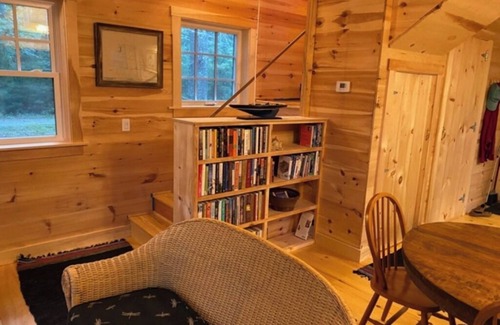 cozy, comfortable living room, kitchen/dining area, and downstairs bathroom with shower, antique marble sink with hot and cold running water Toilet is an outdoor privy.