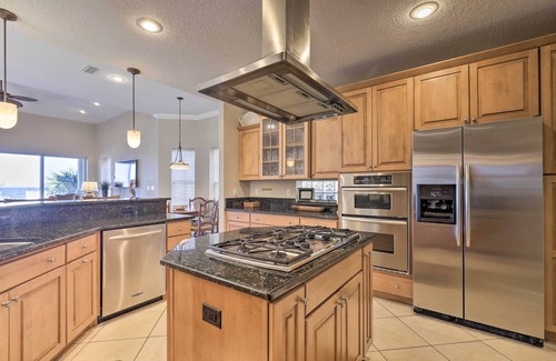 Nestled in a gated waterfront community, this lavish 5-bedroom, 3-bathroom house in Apollo Beah, FL, features high-quality furnishings, a fully equipped gourmet kitchen, and an infinity pool — seemingly ending in the Tampa Bay. Instantly enjoy deep sea fishing and boating from the shared dock, visit the marine and restaurant complex just steps away, or travel just a short drive from the vacation rental to discover white sand beaches. tampa and busch gardens are also only 19 miles away!