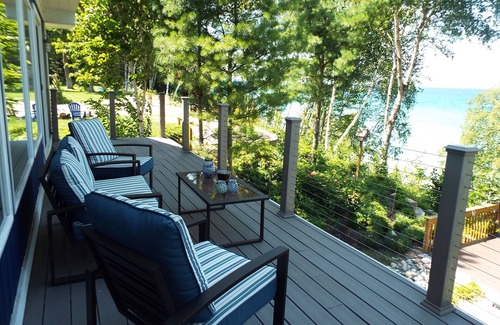 relax and unwind as you enjoy the sights and sounds of lake michigan from our multiple level decks Bring your kayak or paddle board to thoroughly enjoy the beauty of Lake Michigan, or comb the beach for Petoskey stones.