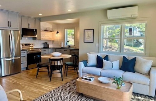 kitchen / dining area - full fridge, microwave, oven, keurig coffee maker, dishwasher, electric stove, toaster, table and 4 chairs, utensils, plates, cooking utensils all provided mini-split a/c and heat in the open kitchen/living area
