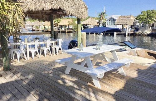 published in "trips to discover" as one of the 13 coolest airbnb's in the keys Tastefully decorated, modern 2 bedroom/1.5 bathroom waterfront tiny house with dock for a boat. Outdoor area with large dining table, lounge chairs and grill to enjoy evenings under the patio lights.
