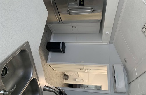 experience tiny home living in our house Master bedroom with queen sized bed. Guest Bedroom has a Bunk Bed with a twin size bed on top and full size bed on the bottom. Full sized modern kitchen equipped with plates, drinkware, pots and pans, utensils, flatware and anything else you may need to prepare meals at home. Full bathroom with shower. Towels and linens are provided.