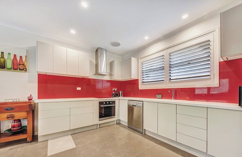 large kitchen with ample bench space featuring electric cooking and the ever important dishwasher to make cleaning up a breeze!