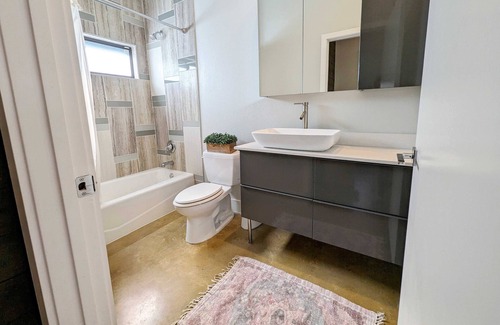 welcome to cactus house! our groovy 4 bedroom, 3 full bathroom home in the heart of east austin equipped with a hot tub, stock tank pool, murals, a cute cactus garden, and so much charm! the house also has two tv's, wifi, ample private outdoor space, and carport for two compact cars.