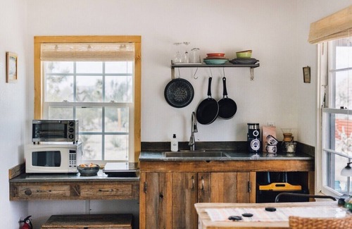 please note - cabin is not set up for any major cooking but has a kitchenette with sink, mini fridge, microwave, toaster, kettle & coffee machine or pour-over with fresh local coffee provided