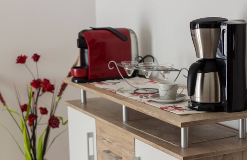 the kitchen is well equipped with oven, ceramic hob, dishwasher, coffee maker, kettle and many kitchen utensils