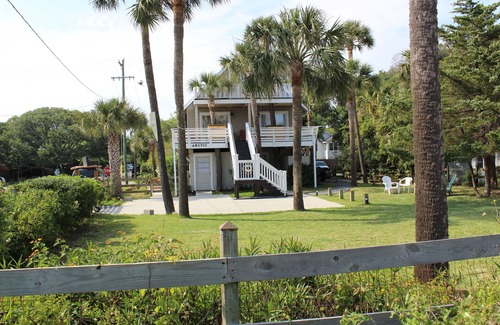 Fantastic house with large fenced yard, across the street from beach and walkover. Two blocks from local market, four blocks from Folly pier and center of town. Protected outside shower with hot and cold water to wash off the sand between your toes! Great ocean views from two decks. Enclosed back porch/sunroom just off the kitchen which leads down to the grill. We also provide baby equipment (high chair, baby gates, pak'n'play) so it is one less thing to pack.