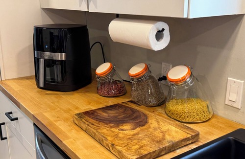 the fully stocked kitchen is ready for whatever you’re craving—whether that’s baking a pie, cooking a hearty dinner, or preparing snacks for an afternoon by the creek