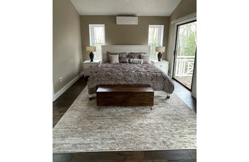 the main floor is also where you’ll find the sprawling primary bedroom with a walk-in closet and en suite bathroom The big and bright sliders provide a view from the front of the house and a huge deck for morning coffee and relaxation.