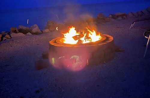 star gaze far from city lights on the lakeside patio with fire pit while roasting marshmallows