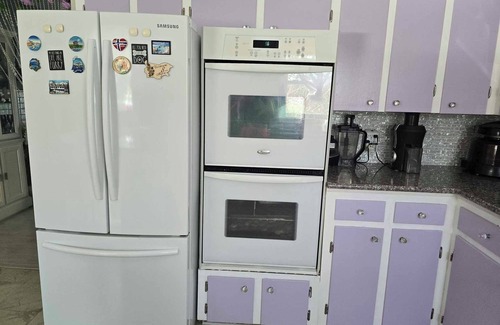 If you looking for a romantic, private getaway with full SPA experience, then the Vacation paradise is the right place for you. Everything inside and out is created to enhance your comfort, peace and full relax. It starts from electric king bed with vibration massage, zero gravity and TV position for restful sleep. Freedom TVwith 20000 life channels and 20000 movies and series. The place has a private gym with access from the kitchen, full furnished with all equipment, new far infrared sauna for detox and rejuvenation, vibration plate for improving the lymphatic flow, sound system also connected to the deck outside, treadmill with a tv scherm in front for experience of virtual walk, tanning bed, bow flex, row machine, spinning bike, belt massager, Abs machine, yoga swing and more. You can perform your workout under the aroma of essential oils for Peace and Clarity from a diffuser in the gym and play healing frequencies or bird sounds from the two TV sets in the gym. You can also enjoy steam bath and shower for two in second bathroom or have an aroma bath in the bath tub with gets in the other one. There is a sun room with work space, books, keyboard and family games You can take peaceful walks in the yard enjoying the sound of water from the fountain and the birds, sitting on the benches under the banana trees, feeding koi fish in the pond in the front yard, and experience a full privacy as the neighbors are far away and nobody can see you or hear if you play loud music .You can enjoy private hot tub in the gazebo outdoors, and take plunges in the private pool. There are 2 trampolines in the yard, many places to sit under the trees, and two hammocks with net for a nap under the green canopy There is possibility to call a professional masseuse home to get massage in the gym, as it has a massage table there. the place is surrounded