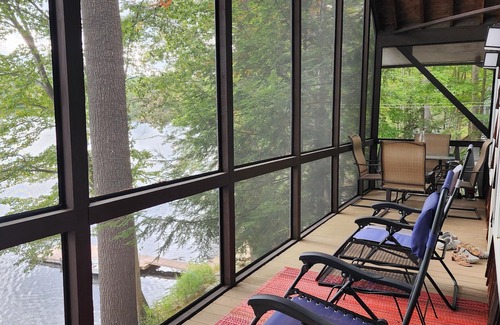 You are cordially invited. Wake up to the call of the Loon. Enjoy a cup of coffee or tea while overlooking the enchanting Emerald Lake. Whether you're into swimming, fishing, kayaking, hiking, ice skating, skiing, or just a tranquil escape from the city life, this is a true 4-season destination. Jump off the oversized dock for a good swim, gaze over the lake during the fall foliage months, or skate on it during the winter months; the possibilities are endless. Pats peak, Sunapee, and Crotched Mts are within 10-30 minutes.