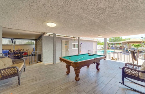 outdoor living: private yard, outdoor pool, gazebo w/ gas fire pit table & seating, santa maria argentine charcoal grill, patio w/ pool table, patio w/ outdoor dining area & ping-pong table, outdoor string lights, fenced-in yard, hammock