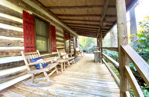 enjoy the peaceful mountain life in a rustic log cabin with all the modern comforts This authentic log cabin was built in 1994 with reclaimed logs. Enjoy the serenity of sitting in front of the fire of the gas logs or listening to the stream as you rock on the decks and porches.