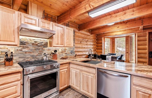 you`ll enter into the cabin through a small arctic entryway that leads to the living room You`ll see a gas fireplace in front of you. From the couch, you can read a book or watch TV on the 55` television with access to Netflix, Hulu, or Disney+.
