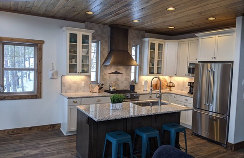 WHISPERING PINES is a Custom designed 2 bedroom Cabin in The Woods. with its modern farmhouse style decor, this cabin is sure to provide the warmth and comfort you desire during your stay in the great outdoors!