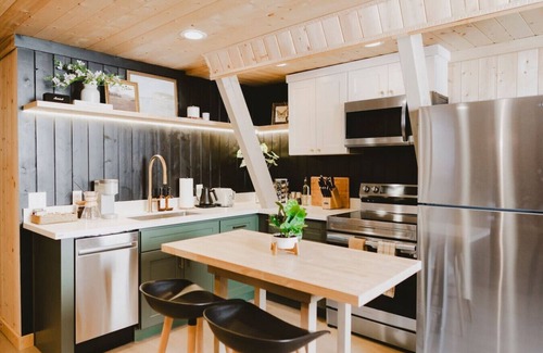 welcome to greenery mountain retreat in skykomish! nestled amidst breathtaking mountain vistas, this designer cabin blends modern comfort with natural beauty Featuring two spacious bedrooms, two bathrooms, and elegantly appointed living spaces flooded with natural light, every moment here is serene and inviting.