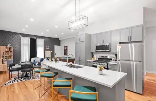 Discover Wicker Park in style! Spacious 2BD/2BA apartment, sleeps 7, perfect for groups. Enjoy a game of pool in the chic living area. Modern amenities, vibrant neighborhood. You will also receive a complimentary wine bottle with your booking! Your ideal Chicago retreat awaits--book now for an unforgettable stay!.