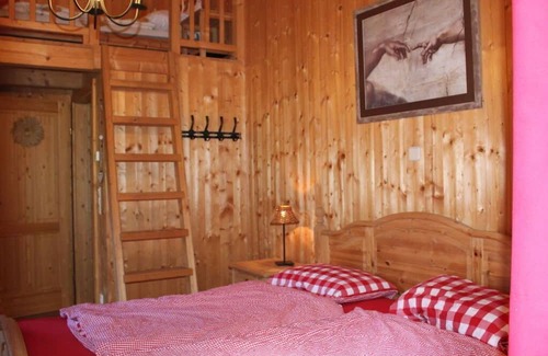 an exclusively furnished wooden house awaits you at 1,800 m The total living space of 140 square meters offers sleeping accommodation for 2 to 10 people (4 bedrooms), a living-dining area with a tiled stove, kitchen, gallery with distant views and 3 bathrooms: 1 bathroom with shower and bathtub. 1 bathroom with shower and 1 bathroom, toilet only. There is also a newly built sauna available. A laundry room with washing machine and dryer is also available. The gallery, the balcony and the terrace with seating offer a unique view of the valley.