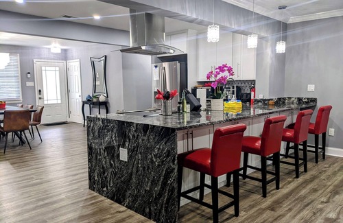 kick back & relax in this newly renovated, stylish space Huge living area with 3 amazing full bathrooms to go along with 4 bedrooms. Smart TVs in each bedroom. Fully fenced yard with hot tub. Centrally located between Downtown Savannah and the beaches on Tybee Island..