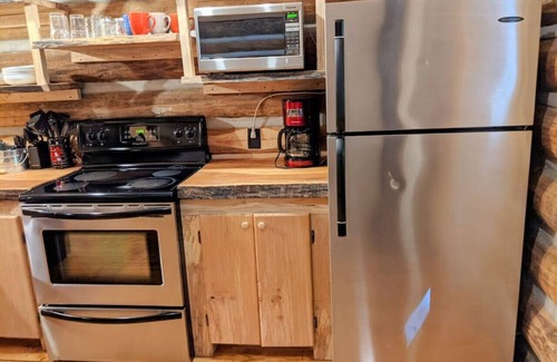 the cabin welcomes you with a lovely open living area Hand peeled logs and real wood floors bring the essence of nature inside. There is a TV with a Firestick (for streaming) along with a DVD player and a large collection of DVD’s. Enjoy a fully equipped kitchen with all the cooking essentials as well as coffee & tea. Climb up to the spacious loft where two comfy queen beds will have you resting easy or use the queen size sofa bed in the living area if you need extra space. There are 2 large decks - front and back, allowing you to take in nature and use the BBQ (propane included), rain or shine.