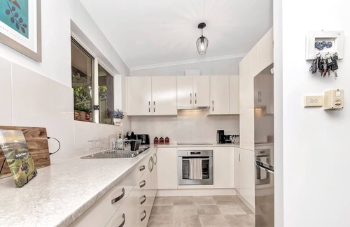 step inside this residence and you’ll instantly feel at home It has thoughtful and stylish interiors perfect for a romantic getaway or a couples’ escape. The living area offers plenty of space to relax at the end of the day with sofa seating, air conditioning and a TV. There’s a fully equipped kitchen should you wish to cook at home. Dine alfresco on the patio, whipping up a feast on the BBQ and mastering your inner sommelier at the backyard bar.