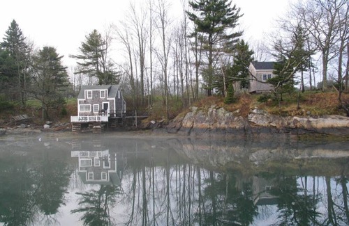 This simple, charmingly rustic cottage sits right over the Damariscotta River, affording serene waterfront seclusion; at high tide, the river laps the shore beneath your feet. Upstairs, you'll find one bedroom with a double bed, futon, and closet. Downstairs, the living room couch folds out to a double bed. The ground floor includes living room, full kitchen, and bathroom, opening up onto a spacious deck and float, providing access to several miles of island-studded river views--perfect for exploring by kayak or rowboat (rowboat available upon request).