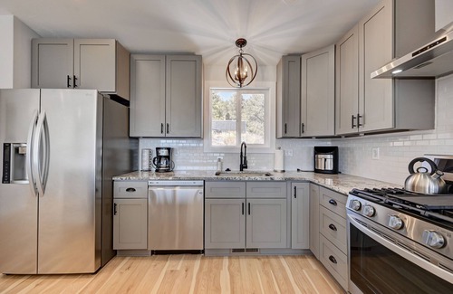 Views, Views, Views! If you are looking for a special retreat, this is your vacation home! When you step into this home will you be welcomed by a view that will take your breath away. This beautifully appointed mountain home sits on 1.9 acres which gives you the best of both worlds: Feels rural and private, but you're only 12 minutes to the local store called Rosalie's Market. Top of the line finishes throughout with a lovely flow and things for the whole group to enjoy. Enjoy sunsets and sunrises from the patio or right from the living room couch as well as the second level deck overlooking scenic views. There are so many fun things to do at this house! Game room in walk out basement with Foosball table, freestanding Arcade game with 15,000 preloaded games! Walk-out basement has a TV with a spacious couch to watch movies, bunk room for the kids to play with lots of toys, and there is an electric fireplace. Need to work from home? No problem there is an office space in the primary bedroom closet! The primary bedroom features a soaking tub with an oversized glass enclosed shower and double sinks. This home also features a 2 car garage for you to park if you would like. All linens and cookware are provided. Along with a highchair and pack n play.
