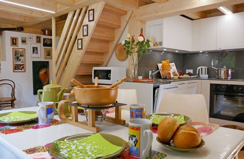 "rustico ginetta", 3-room house 60 m2 on 2 levels Partly with sloping ceilings, fully renovated in 2018, comfortable and cosy furnishings: open living/dining room with open-hearth fireplace, satellite TV, flat screen, radio, CD-player and electric heating. Exit to the terrace. 1 double bedroom with 1 double bed (2 x 90 cm, length 200 cm). Open kitchen (oven, dishwasher, 4 ceramic glass hob hotplates, microwave, electric coffee machine, raclette grill, fondue Set (chinoise, cheese)). Shower/WC. Electric heating, wood heating. Upper floor: (steep stair) open gallery with 2 beds (80 cm, length 200 cm). Patio. Terrace furniture, barbecue, deck chairs (2). Beautiful view of the mountains and the forest. Facilities: washing machine, children's high chair, baby cot for up to 2 year olds (extra), hair dryer, logs (extra). Please note: suitable for families. Non-smoking house. Maximum 3 pets/ dogs allowed. Fire extinguisher. Two way road, real time 20 minutes. Instead of an enclosed bedroom, some sleeping areas are located in an open-plan area (gallery, alcove, etc.). nl-00003126