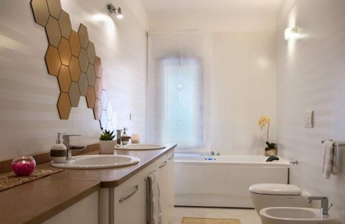 bedroom + ensuite bathroom 2: double bed, wifi internet, air conditioning, satellite tv, basin, toilet, bidet, shower, hairdryer