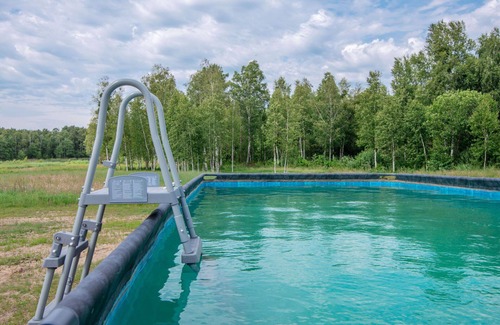 the zagroda nad krutynią is a single-family house built in 2022, surrounded by trees and meadows in kierwik, poland It offers a private property of 15,000 square meters, including a meadow of 1,000 square meters and a pond. You'll enjoy amenities like a yard, internet WiFi, and parking, perfect for your vacation rental.