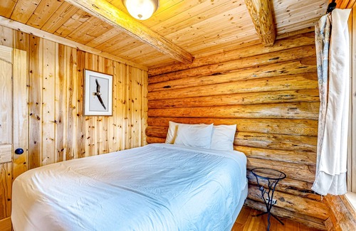 ideal for a romantic getaway or a small family vacation, this two-story, off-grid cabin offers classic, rustic comforts, like wells, a septic tank, and solar power, alongside a number of desirable amenities Prepare all your favorite recipes in the well-equipped, full kitchen, then gather for meals at the adjacent table - perfect for rainy day board games! After exciting days out, return home, get a fire going in the wood stove, and settle in for a quiet evening together with hot drinks and great conversation.