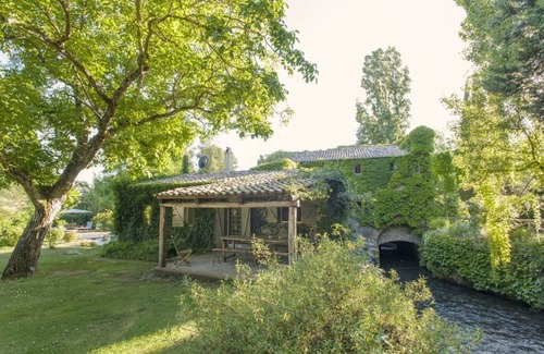 la casa del giardino: outside the historic center there are two double bedrooms (each with its own bathroom), one of which has an adjoining living / dining room and veranda overlooking the river with \"la cannara\" acting as a backdrop