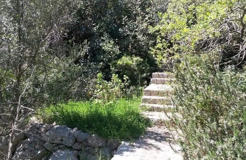villa le sciarre benefits of a gated, private access to the sea: a beautiful path of stone stairs leads down through the mediterranean vegetation to a rocky cove with deep blue water A concrete platform and stone stairs allow one to dive into the sea. Please note that the access to the sea is just 100 metres away but the path (160 steps without railing or any protection) is in part steep and might be a little bit dangerous.