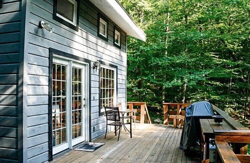 woodlands is a cabin tucked into the treetops, specializing in that all-too-elusive peace and quiet In spring, summer and fall the spacious wraparound deck is the center of activity...and of tranquility, whichever is your thing. And then, of course, there are wonderful barbecues culminating with chats by the fire pit continuing on into the night.