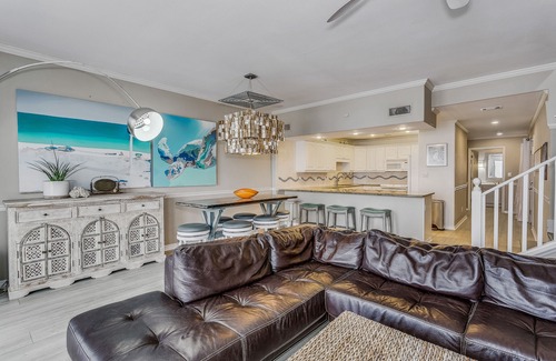 This luxury townhouse has the closest beach access than ANY property on Pensacola Beach because it was built before the set back distance was changed in 1996 after Hurricane Erin. This home offers spectacular views of Gulf sunsets. For added comfort, it also features high-end furniture, plentiful amenities, and more.