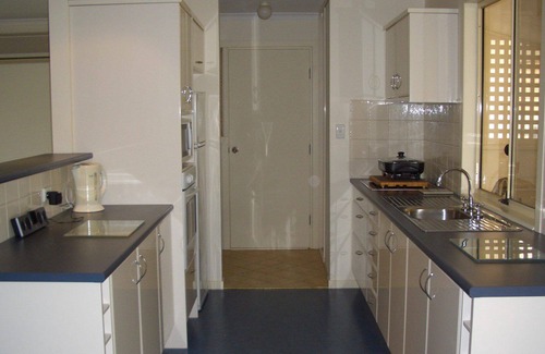 open plan kitchen, dining and lounge with split system air-conditioner, tv, dvd Bathroom with Shower, no bath, seperate toilet, small laundry with sink, no washing machine, washing can be done at the Port Rickaby Caravan Park.