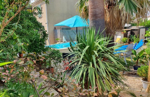 in a very quiet and relaxing residential area with private pool and garden access reserved for the rental of the apartment, free parking space, green space ..