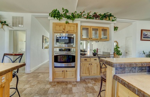 Private home with a very spacious front parking area three miles from the heart of downtown Moab. Three bedroom, two bath house with open living spaces, fully stocked kitchen for the nights the restaurants are crowded. BBQ on the sandstone patio and watch the kids and dogs play on the grass. Plenty of parking in front of the home for all your toys and trailers. This location is close to the Golf Course, 4x4 trails, Colorado River, Slick Rock bike trail, La Sal Mountains and National and State Parks.