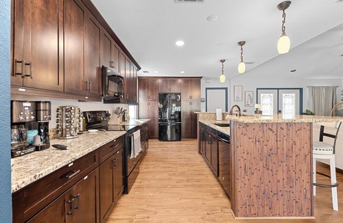 fully equipped kitchen, washer/dryer, central a/c, smart tv, outdoor bbq grill, and a peaceful, private backyard to recharge after a day of fun