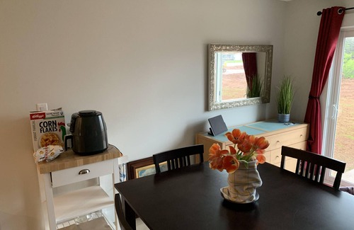 The Heart of Rustico Home is our spacious 1800 square foot newly-built 3-bedroom, 2.5-bath town home in North Rustico that is a short walk to restaurants, liquor store, grocery store, wharf, deep sea fishing, beach, kayaking, North Rustico boardwalk, national park, world famous lobster suppers, and shopping at Seawalk Park boutiques. Only a 5 minute drive to Green Gables and Cavendish, world class golf courses, and attractions. A free level 2 EV charger is included with both J1772 and Tesla connectors. The fenced backyard has a BBQ (propane included), fire table, patio table and chairs, and decorative lighting. make this your pei vacation headquarters!