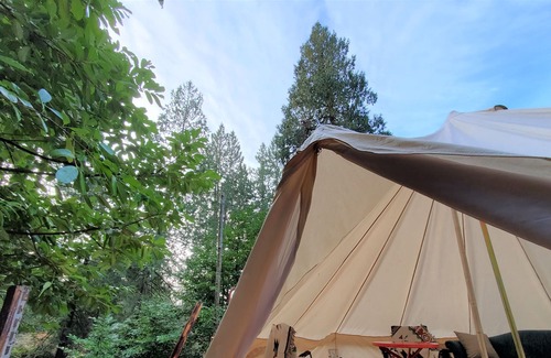 Yurt Glamping with Sauna, Movie setup, Kayak is located in Woodfibre. Yurt Glamping with Sauna, Movie setup, Kayak provides accommodation, featuring Pet Friendly, Balcony/Terrace, Bedding/Linens, among other amenities. This House features Pet Friendly, Balcony/Terrace, Bedding/Linens, to make your stay a comfortable one.