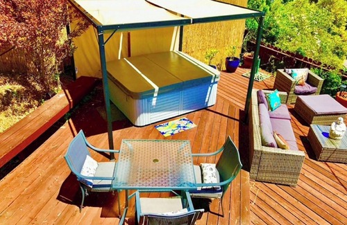 NEW LISTING! Our bright and cheery Zen Den Studio Apt is located in the peaceful and serene North Berkeley Hills. Chill out on your private sun-soaked deck; relax in the Hot Tub with Bay Views; or strum a guitar in the light-drenched bedroom while watching the sun set over the City. The Zen Den is surrounded by nature, trees and greenery. And yet it’s so close to the hustle and bustle of downtown city life w/ many it's shops and restaurants. have the best of all worlds at the zen den studio!