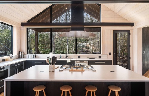Tucked away in the Blue Ridge Mountains, Wander Black Mountain is a modern Scandinavian cabin designed by architect Michael Neiswander. Just outside Black Mountain and a short drive from Asheville, this retreat provides a unique design experience with a feeling of "sleeping in the trees." With accommodation for up to 12 guests, floor-to-ceiling windows, and a private hot tub, this home is perfect for a family getaway or group retreat..